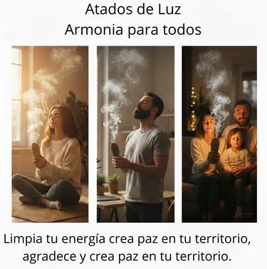 Enciende tu Atado de Luz cuando sientas la necesidad de renovar el aire y la energía de tu entorno. Gracias a la calidad de nuestras plantas, es una herramienta muy duradera: solo necesitas encenderlo de 2 a 3 minutos para limpiar tu espacio y luego lo apagas, permitiendo que un mismo atado te acompañe por muchos días.
