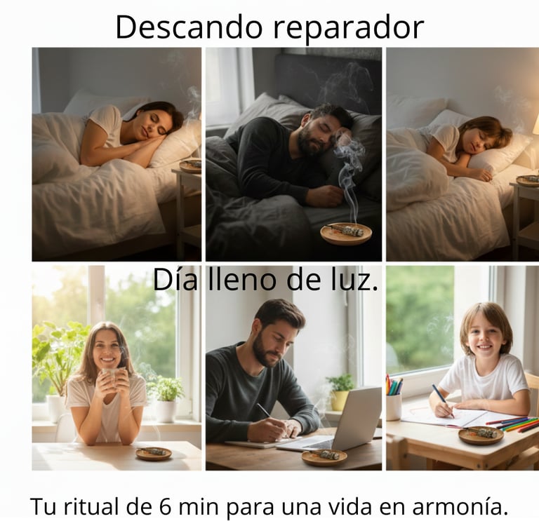 🌙 Al Anochecer: Úsalo antes de dormir para soltar las tensiones del día. Un momento de paz para agradecer lo vivido y entrar en un descanso profundo y reparador.