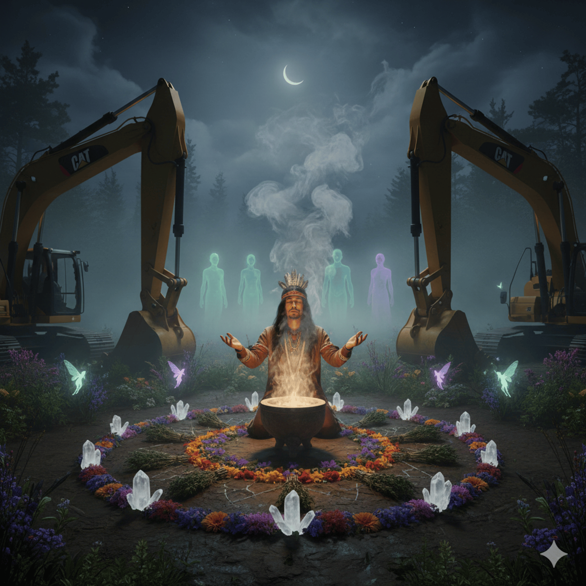 "Nuestras imágenes son creaciones artísticas (IA) para proteger la privacidad de nuestros aliados. Creemos que un ritual es un acto sagrado de entrega; capturarlo en cámara distorsiona la energía presente. La verdadera sanación no se muestra, se siente y se vive en el alma."